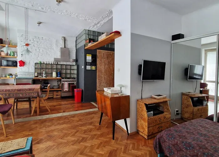 The 31 m² Studio Klimat Mokotow Warsaw offers easy access to such tourist sites as the Roman Catholic Church of St. Casimir, located approximately a 5-minute walk away. This 1-bedroom apartment provides guests with street views and a barber shop.